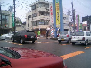 立ち番とは、通る人・車に肉声で名前と挨拶をします。まずは名前と顔を覚えてもらわなきゃ始まりませんから。